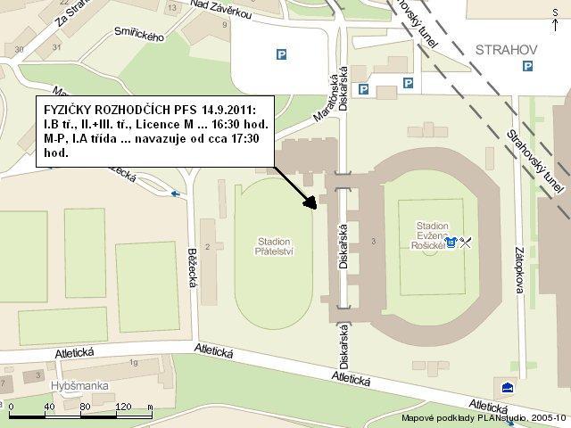 na „Stadionu Přátelství“ – Praha 6, Strahov (viz přiložená mapka):